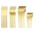 Each piece in this stunning set boasts a sleek, matte gold finish, adding a touch of sophistication and luxury to your table setting. Crafted from high-quality stainless steel, the cutlery set is durable, resistant to rust, and designed to last, making it an excellent investment for both special events and daily use.