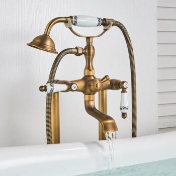 Luxury Freestanding Dual Handle Bathtub Faucet with Handheld Shower