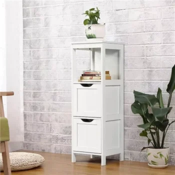 Modern White 4-Layer Narrow Bathroom Storage Cabinet with Movable Shelves