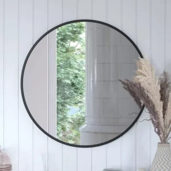 Modern 30″ Black Round Wall Mounted Mirror with Backlight – Elegant Decor for Bathroom & Home