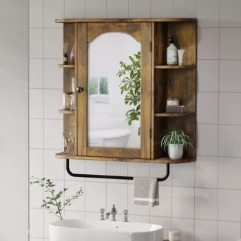 Wall-Mounted Brown Mirror Cabinet with Removable Shelf