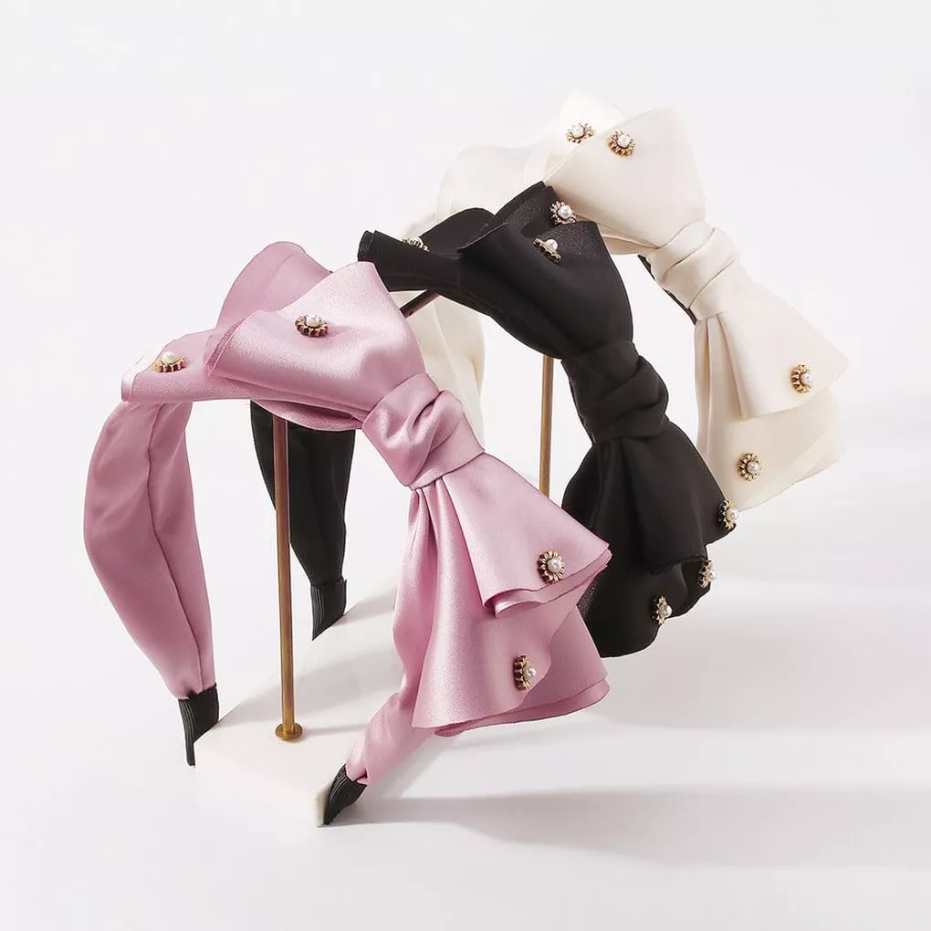 Discover Elegance and Style with Our Bohemian Satin Rhinestone Bow Hairband