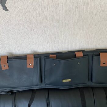 What sets this organizer apart from others is its superior quality and functionality. It’s crafted with durable eco-leather that's not only waterproof but also easy to clean - just wipe it down with a damp cloth! The storage pockets are ample enough to hold all my car essentials neatly in place.