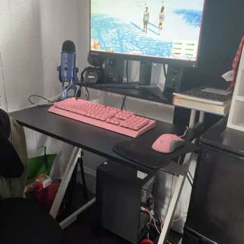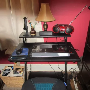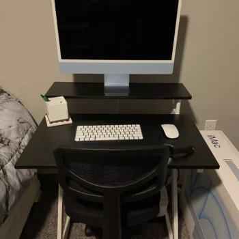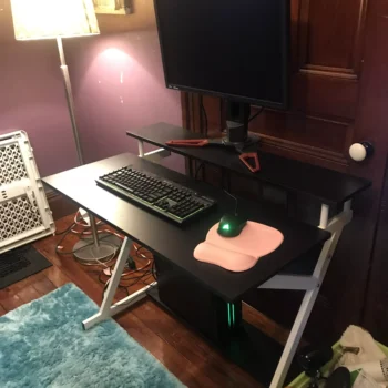 Love this desk! The monitor shelf is a great feature, and it looks sleek in my room. Highly recommend.