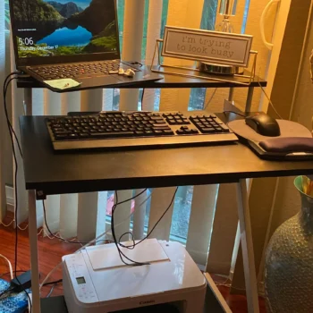 My quest for the perfect small-space desk ended with this Z-shaped marvel. Its sleek design immediately caught my eye, but the functionality has made it indispensable. The monitor shelf has not only improved my ergonomic setup but also created more usable desk space below. The bottom shelf is perfect for my CPU and books, effectively doubling as a footrest for added comfort. Assembly was straightforward, thanks to the clear instructions. This desk isn’t just furniture; it’s a space-optimizing solution that has made my work-from-home experience infinitely better.