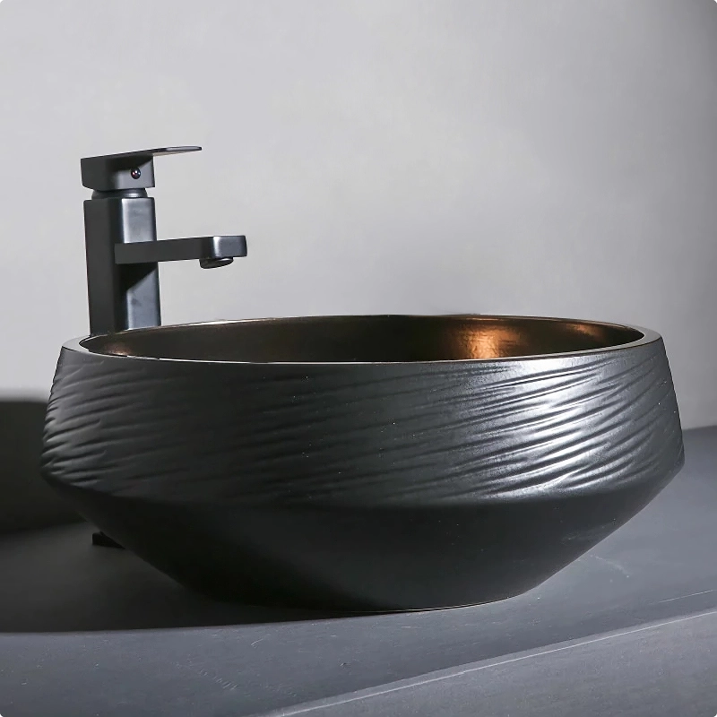 Deluxe Black and Bronze Ceramic Bathroom Sink Set