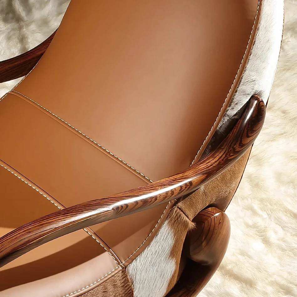 Want to share my excitement about the chair – it's truly a symbol of enduring elegance! Adorned in sumptuous genuine leather upholstery, it emanates sophistication and durability. Crafted with a solid wood frame, it ensures steadfast stability and unwavering comfort, promising to be a lasting investment for my home. Its minimalist design enhances the ambiance of my room. My favorite spot in the house! Recommend it to anyone seeking luxury and relaxation!