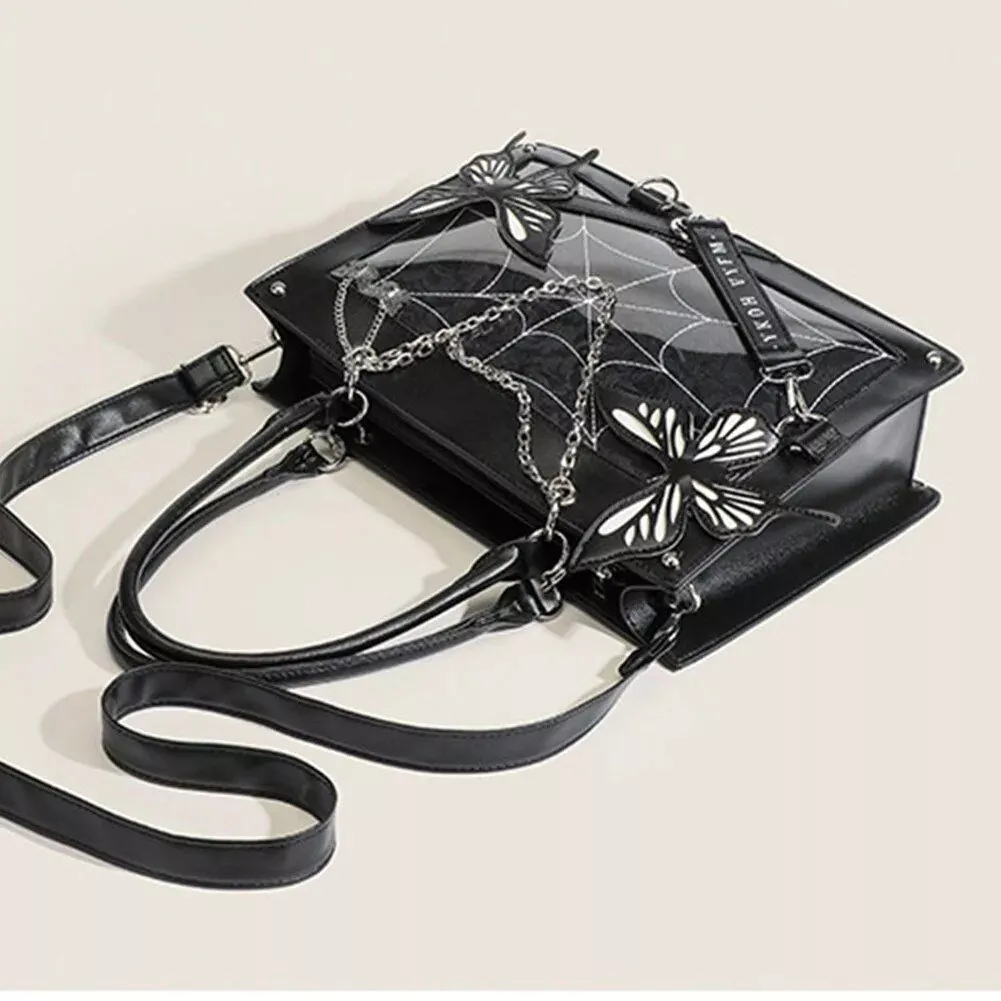 Step into a world where gothic charm meets Y2K flair with our Gothic Lolita Y2K Chain Crossbody Tote. Crafted for the fashion-forward woman, this punk vintage large shoulder bag is not just an accessory; it’s a statement. Whether you’re navigating the urban jungle or capturing moments in street photography, this handbag elevates your ensemble with an air of mystique and sophistication.
