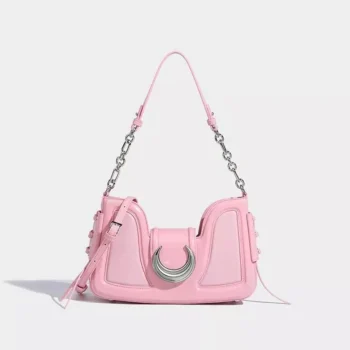 Luxury Pink Half Moon Crossbody Bag