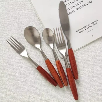 Elegant Natural Wood & Stainless Steel Cutlery Set – 5Pcs