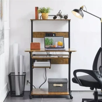 Multi-Functional 3-Tier Computer Desk with Charging Station & Printer Shelf