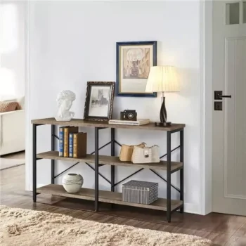 Industrial 55″ 3-Tier Console Table, Rustic Brown