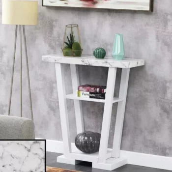 Elegant White Faux Marble & Glass Console Table with Shelf