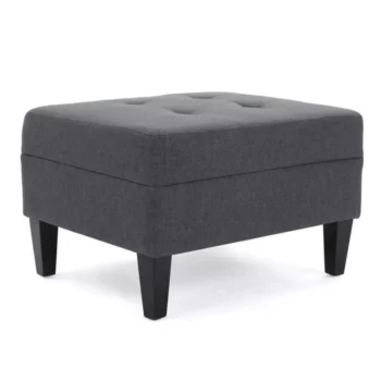 Elegant Gray Faux Leather Storage Ottoman Stool with Natural Pinewood Trim