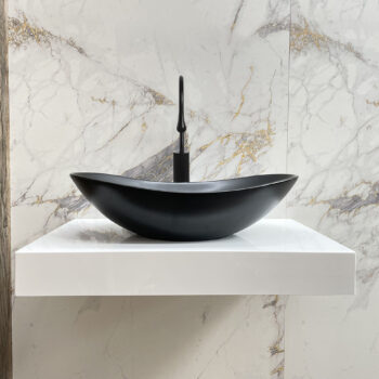 Our ceramic wash basin not only serves its practical purpose but also adds a statement piece to your bathroom decor. The sleek black basin with a modern oval shape exudes elegance and style, making it a focal point of your space.