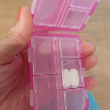 i’m so glad i found this pill organizer! it’s perfect for my travel needs. the compact design fits easily into my carry-on, and the compartments are large enough to hold all my pills. the secure lids give me peace of mind that nothing will spill. it’s also very easy to use and clean. i’ve taken it on a couple of trips now, and it’s been incredibly convenient. it’s made organizing my medications so much easier, and i never forget to take my pills. highly recommend this to anyone who needs a reliable travel pill organizer.