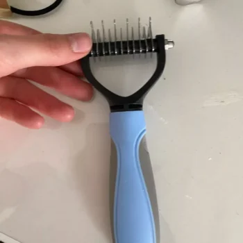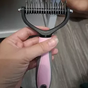 I've finally found the holy grail of pet grooming with this double-sided hair remover! It's a complete lifesaver, tackling the stubborn knots and loose fur on my golden retriever with ease. The stainless steel teeth glide through tangles without any discomfort, leaving behind a beautifully smooth coat. What's more, I've noticed a healthy sheen and less shedding around the house. The ergonomic design makes it comfortable for both of us during grooming sessions. A must-have for any pet owner tired of fur-covered furniture!