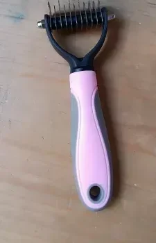 Never thought I'd rave about a pet grooming tool, but here I am! This double-sided hair remover is a game-changer. My home is finally winning the battle against pet hair, thanks to the efficient knot removal and easy de-shedding. My cat, usually averse to grooming, now purrs contentedly as I comb through her fur, thanks to the gentle, no-scratch design. The ergonomic handle means my comfort isn't sacrificed, and the sleek, healthy results speak for themselves. It's not just a brush; it's an essential part of our daily routine now.