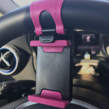This steering wheel phone holder is a lifesaver. I use my phone for GPS all the time, and now I can keep it right in front of me. The installation was super simple, just a few minutes and it was good to go. It fits snugly on the steering wheel and doesn’t interfere with my driving at all. I also like that I can easily adjust the angle, so I always have the best view of my screen. It's sturdy and well-made, definitely worth the money. I feel much safer on the road now with this.